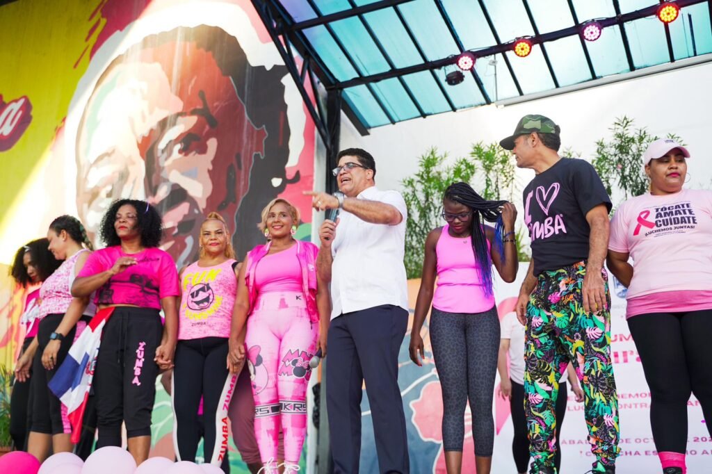 Santo Domingo Este,- En el marco de la conmemoración del Día Mundial contra el Cáncer de Mama, la Alcaldía de Santo Domingo Este organizó el Zumbatón “Cultura y Salud”, una vibrante actividad que reunió a cientos de mujeres en el espacio abierto Chencha. El evento fue presidido por el alcalde Dío Astacio y contó con la participación de la Dirección de Cultura, encabezada por Alfredo Reynoso.